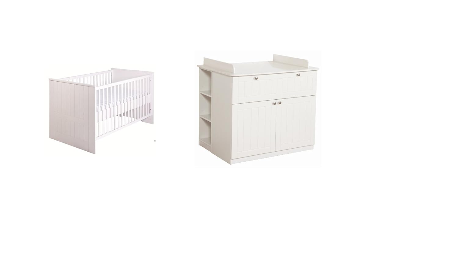 Wie die babybetten selbst so sind auch die beiden seiten es umbau sets in weiß dekor.